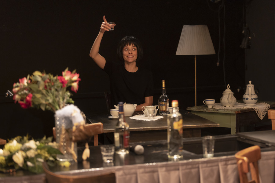 Dramska igralka se znajde na svoji komemoraciji, se ozre nazaj na svoje življenje in z obilico črnega humorja praznuje svoj lastni "afterparty".